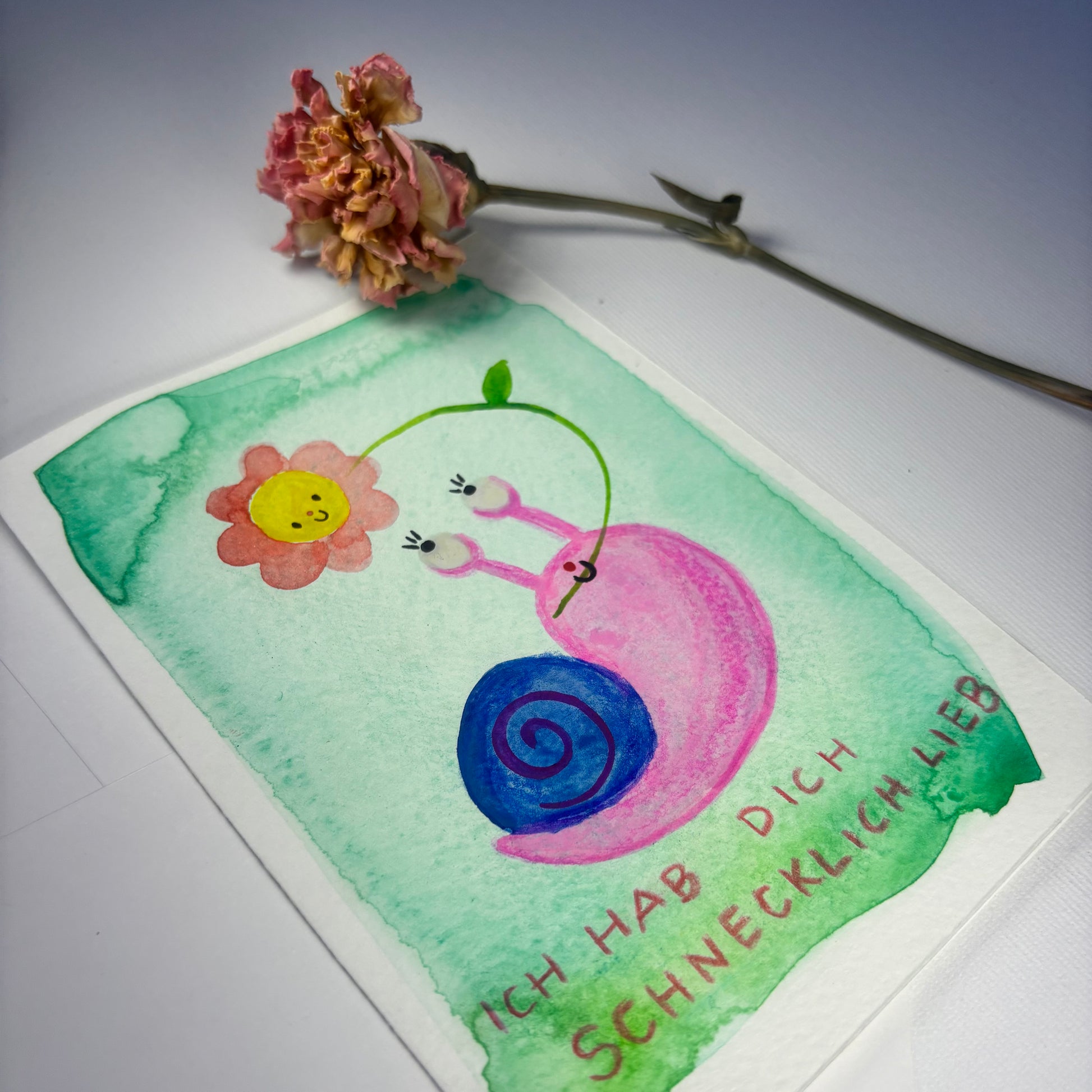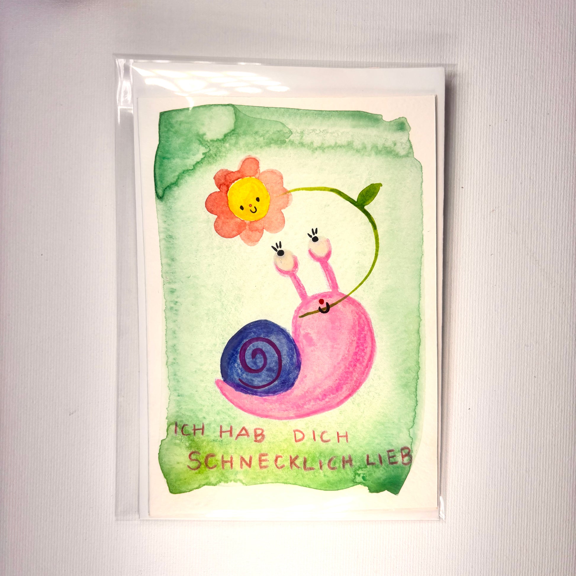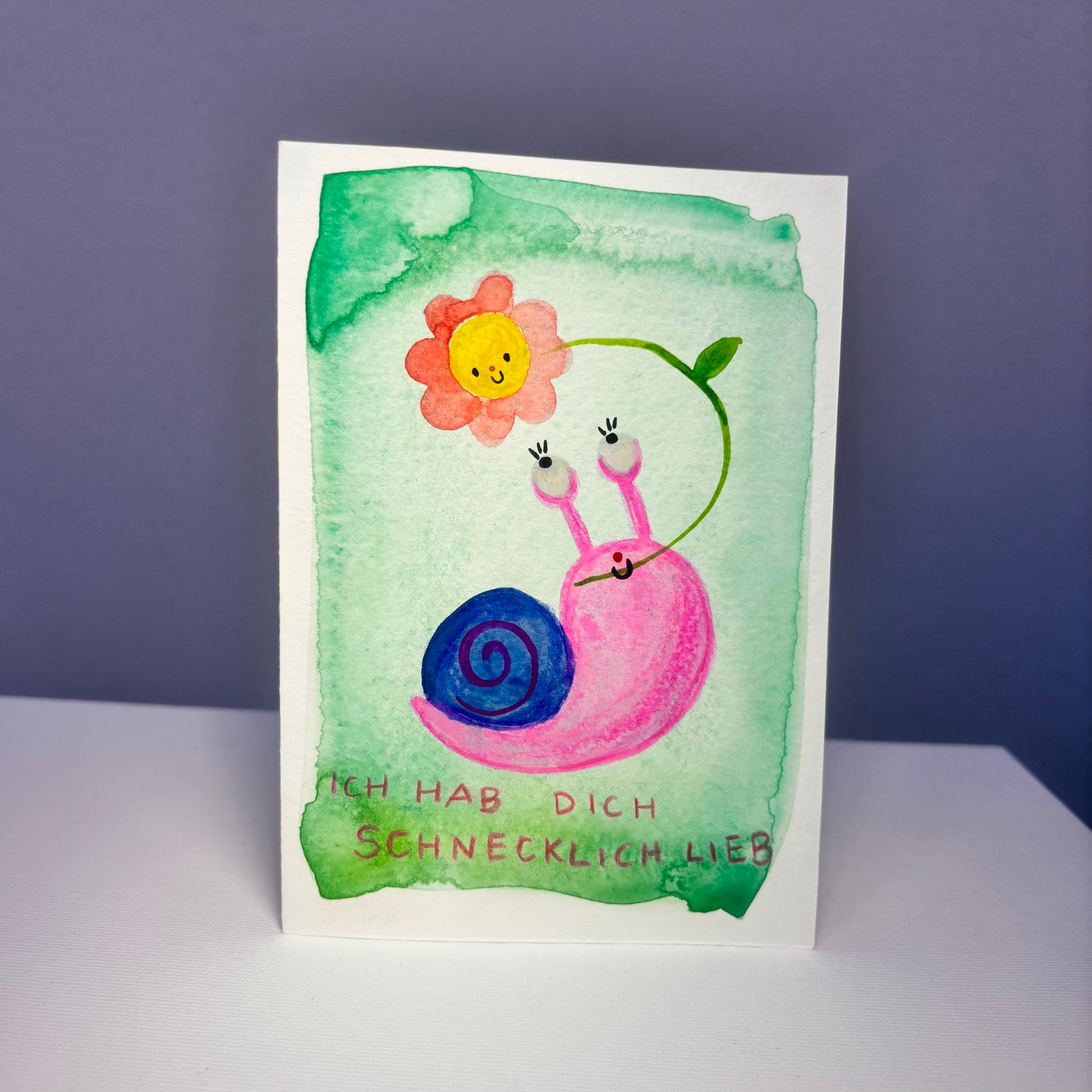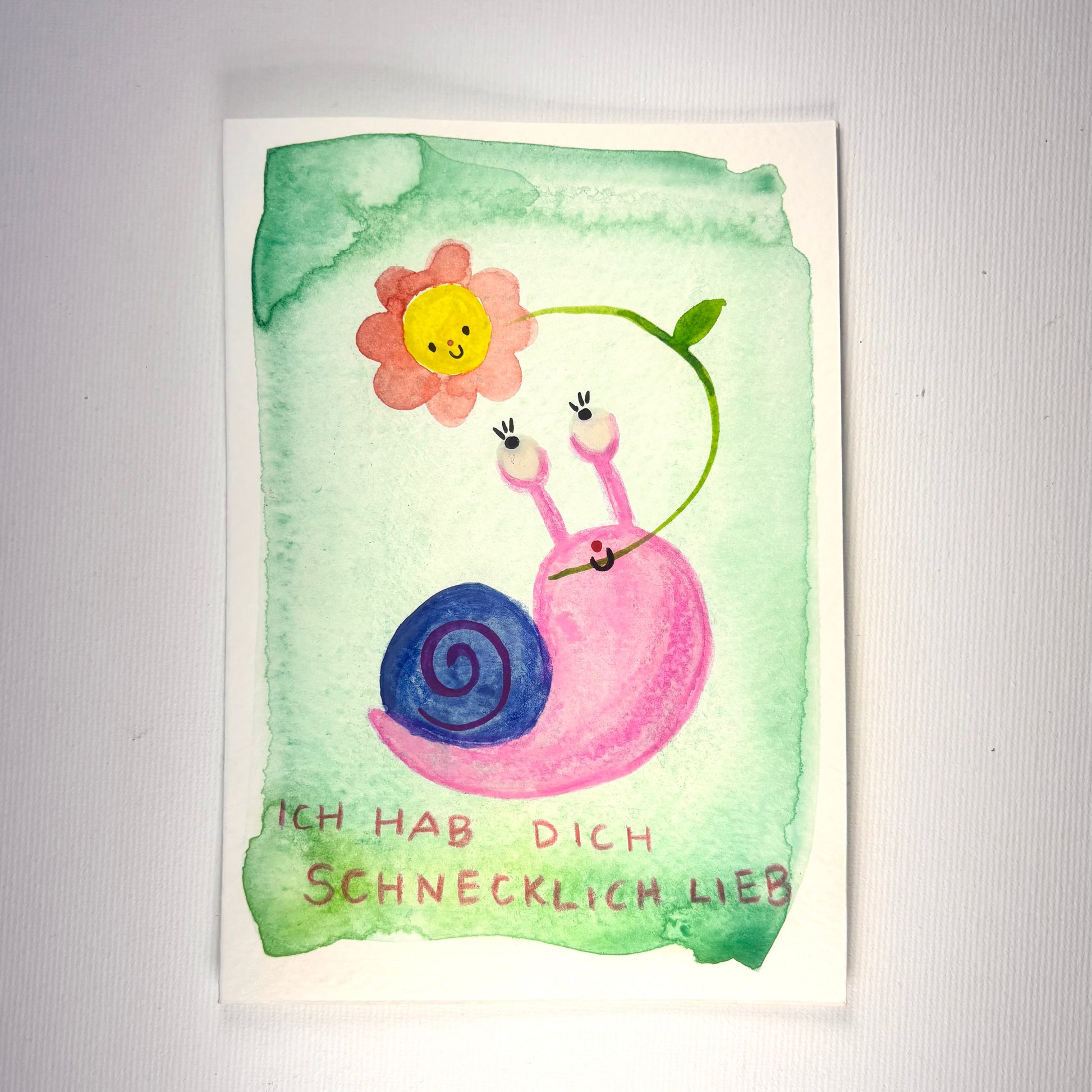 Diese handgemachte Aquarellkarte ist mit Liebe und Sorgfalt von Hand gemalt – kein Druck, sondern ein echtes Einzelstück. Jede Karte erzählt ihre eigene kleine Geschichte und bringt Farbe, Gefühl und Persönlichkeit in deinen Gruß.