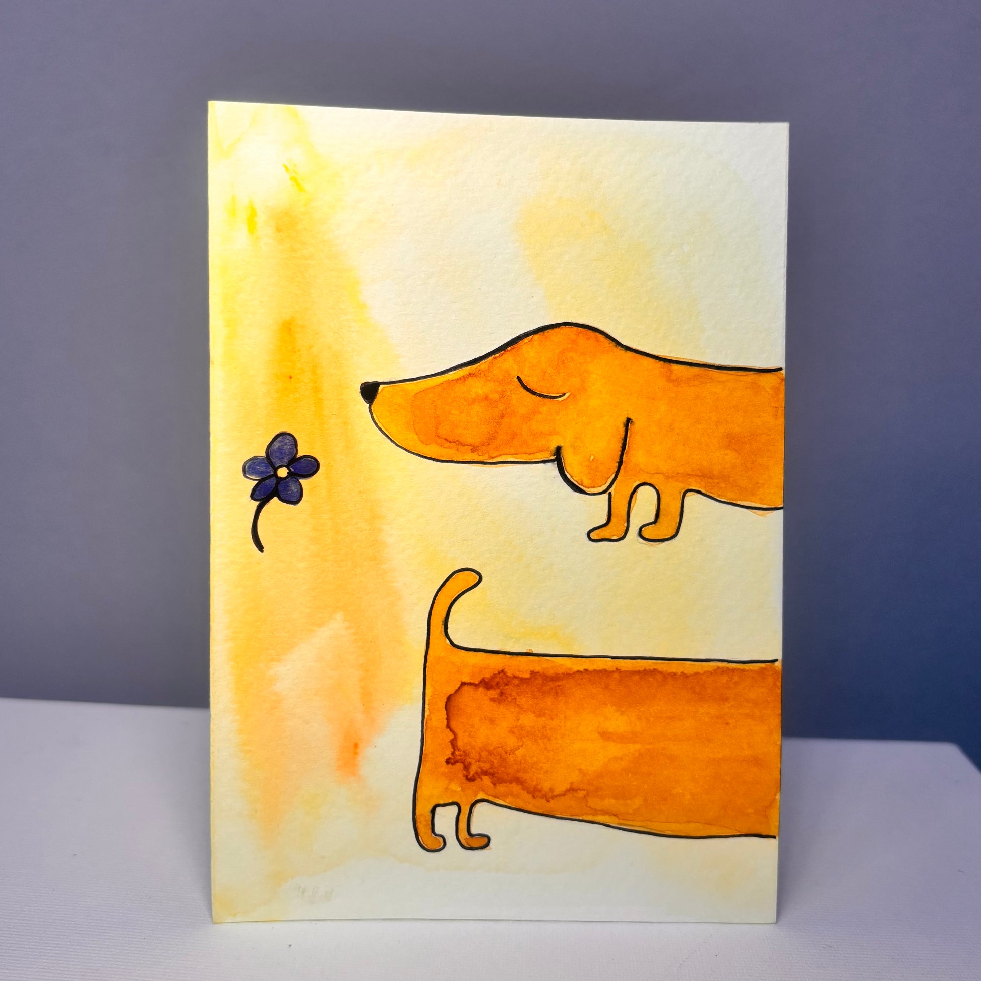 Diese handgemachte Aquarellkarte ist mit Liebe und Sorgfalt von Hand gemalt – kein Druck, sondern ein echtes Einzelstück. Jede Karte erzählt ihre eigene kleine Geschichte und bringt Farbe, Gefühl und Persönlichkeit in deinen Gruß.