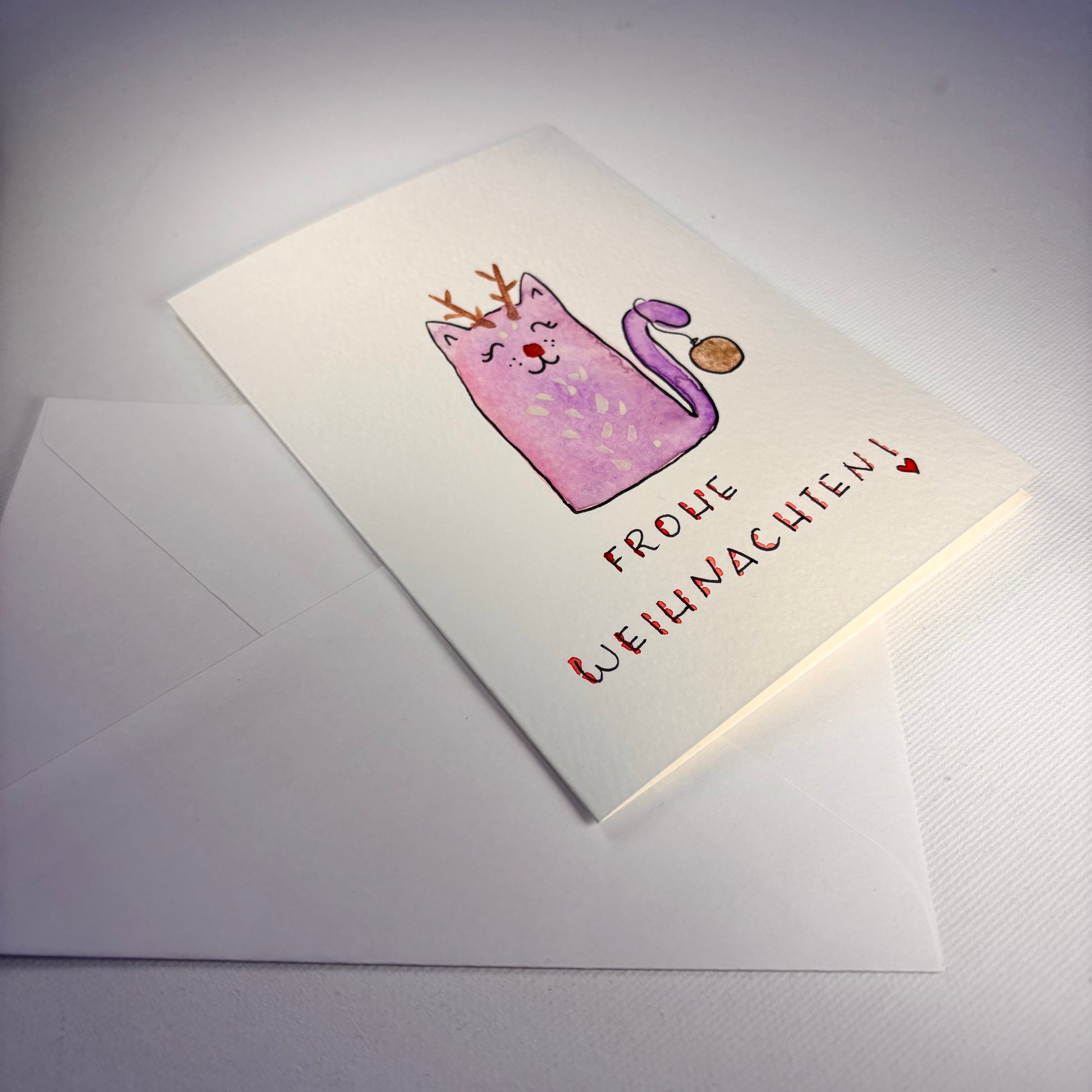 Diese handgemachte Aquarellkarte ist mit Liebe und Sorgfalt von Hand gemalt – kein Druck, sondern ein echtes Einzelstück. Jede Karte erzählt ihre eigene kleine Geschichte und bringt Farbe, Gefühl und Persönlichkeit in deinen Gruß.